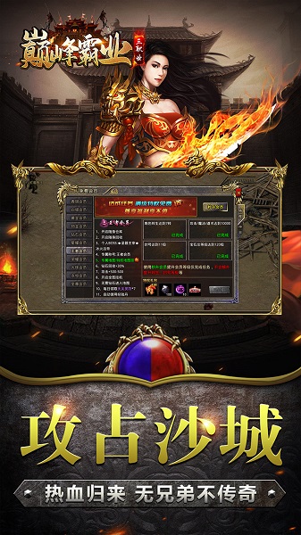 更以装备好打爆率高著称。快快加入吧,与兄弟行会联盟攻沙拔寨,成就传奇人生。超高攻速,3D炫酷技能特效,玩家将再次开启经典传奇之旅,变身三国指挥官。巅峰霸业是一款角色扮演手游,传奇单职业玩法结合东汉末年三国乱世背景,重温兄弟情谊、怀旧激情年代、极限攻速,无限传奇币,爆率全开!
