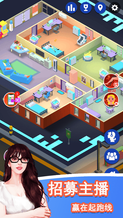 经营直播公司的手机游戏。你需要招募更多的主播来增加你公司的知名度。拥有名人主播可能会给你带来源源不断的财富。你可以培养自己的主播团体。通过直播吸引粉丝,让你的直播公司越做越大,成为行业龙头。