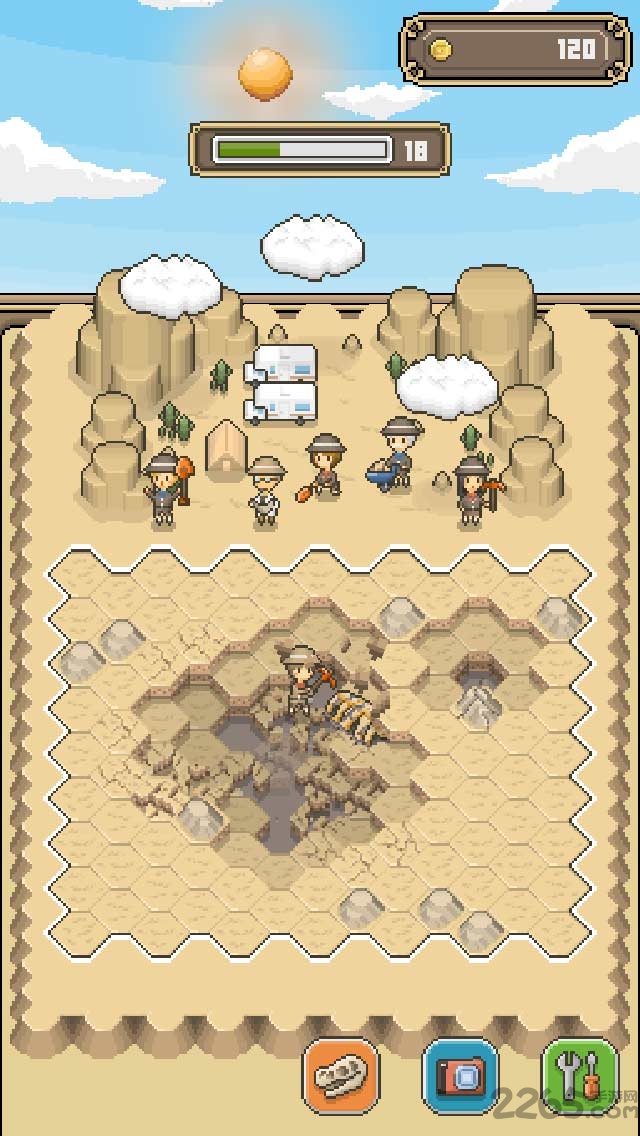 3、赚取更多的金币来升级你的博物馆,还能够提升主角的等级和技能来挖掘出更加稀有的化石。