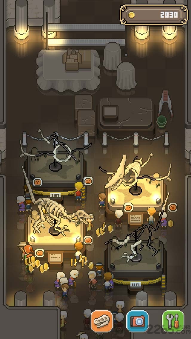 1、游戏方式相当简单,初期玩家将收穫两个化石,而观众会进入博物馆内观看化石展览并支付门票钱;