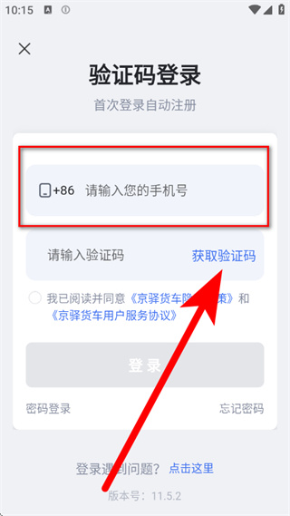 3、在验证码登录页面,输入手机号,点击获取验证码。