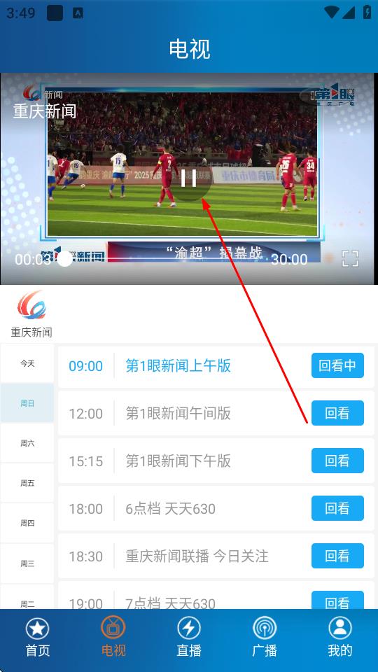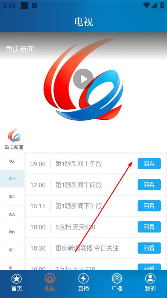 3、找到想看的电视节目,点击节目右侧回看按钮,即可观看节目。