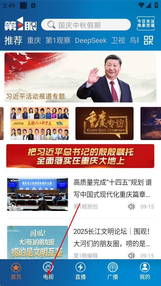 1、打开第1眼新闻App,点击底部导航栏电视选项。
