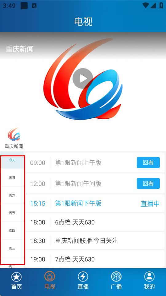 2、在电视页面左侧,选择想要查看的日期。