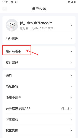 3、在账户设置界面,点击账户与安全选项,进入账户与安全页面。