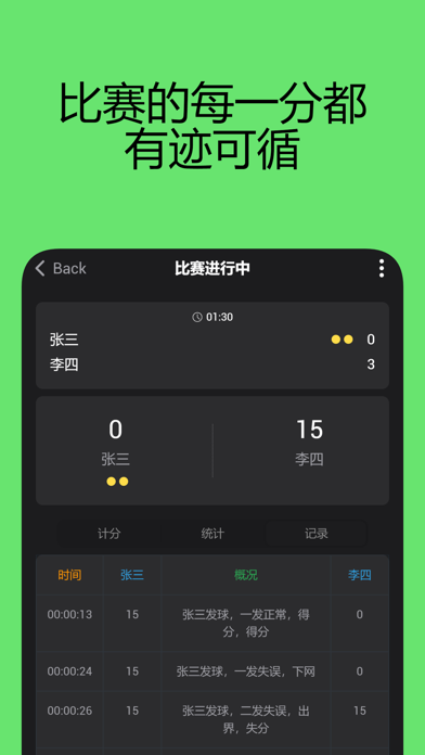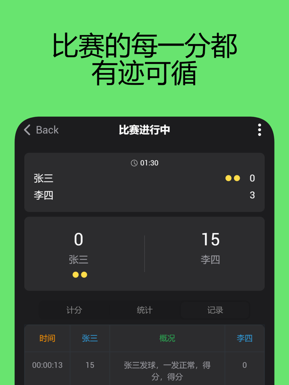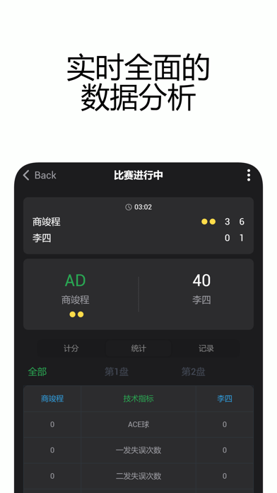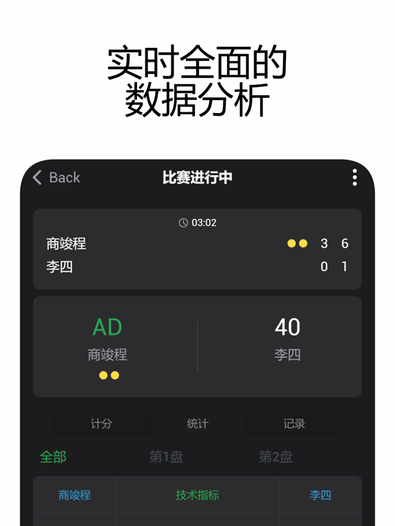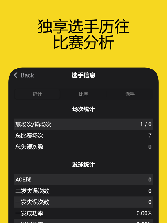 网球计分助手是一款专业的网球计分软件,支持不同比赛赛制,提供简易、普通、专业的计分模式,非常适合家长、教练以及网球选手使用。同时提供ATP/WTA/ITF/CTJ等赛事的排名。 网球计分助手软件主要有如下特点: 1、实时比分记录 准确记录每一球的得分情况,让选手或教练在比赛中轻松追踪比分,确保精准的比赛统计。 2、全面的数据分析 提供针对全场、每一局的每一球得分统计和分析,帮助选手或教练深入了解比赛进展,挖掘选手的优势和改进空间。 3、个性化选手管理 允许用户添加选手,并记录选手的基本信息和比赛数据,助力用户建立自己的选手库,随时查看选手信息和历史表现。 4、简洁清晰的界面 简单易用的界面设计,会用手机就能轻松上手,快速找到所需功能,专业而又方便。 专业版 1、专业版,可以无限次记录比赛,提供完整的技术统计数据分析。 2、支付成功后,您将立即享受全部服务,且不支持退款。 专业版1个月:时长:1个月,价格:¥48 专业版12个月:时长:12个月,价格:¥398 使用条款:https://tennis.xinbeitime.com/protect.html 隐私政策:https://tennis.xinbeitime.com/private.html系统交互与性能优化