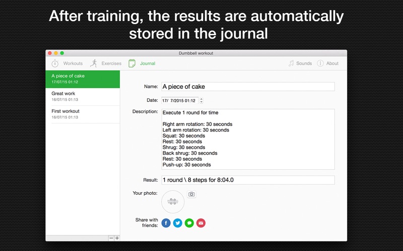 哑铃锻炼 - 你最好的哑铃训练师 会员在艰难fintes中心有时会花费太大,而且它并不能保证完美的效果。这些练习哑铃不会占用太多的时间,并且由于在所有的训练是不同的,永远的利益和激励概念。 我们的目标是最少的设备和一个最大结果的肌形成。吃干净,定期培训,开展意志力 - 你不会后悔的一天是这样的。 - 该应用程序包含7个锻炼节,每节有15个训练,没有重复 - 每节有5个难度级别 - 每一个运动都有详细的描述,照片和视频指令; - 精加工锻炼后,你可以分享到Facebook,Twitter和其他社交网络的结果。 - 演习75详细说明 好运气在你的锻炼! Some bugs fixed Small design changes