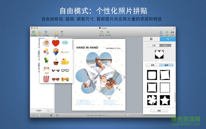 拼贴精灵3.5.9专业版是一款使用简单,让用户在Mac OS X系统下自动生成漂亮的照片拼贴的拼图制作应用程序. 它让每个人都能够组合美化自己的照片集. 只需短短几秒,一整批照片就能变成一系列令人惊叹的拼贴.