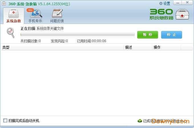360系统急救箱电脑版是一款电脑病毒查杀工具。它的功能十分强大,可以快速、准确地查杀各种木马。360系统急救箱操作简单,轻巧不占内存。喜欢就赶紧来下载试用吧!