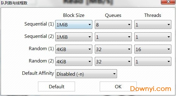 测试间隔时间可设置为 0~10分钟,还可以修改块数据大小、线程数等等。