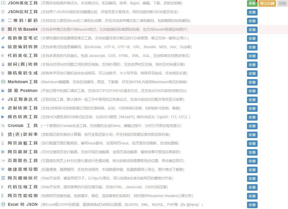 FeHelper是一款前端实用工具集,包括JSON格式化、二维码生成与解码、信息编解码、代码压缩、美化、页面取色、Markdown与HTML互转、网页滚动截屏、正则表达式、时间转换工具、编码规范检测、页面性能检测、Ajax接口调试、密码生成器、JSON比对工具、网页编码设置、便签笔记等。