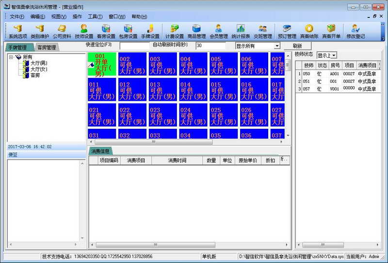 智信桑拿洗浴管理系统帮助更好管理你的洗浴中心,无论是对员工还是对客户都能进行很好的管理,而且财务系统也在其中,方便你进行调度。软件使用需要一些学习成本,可以说是这时一个非常详细的系统。如果你需要其中的数据还可以使用excel输出,为你提供相应的数据。欢迎来体验!