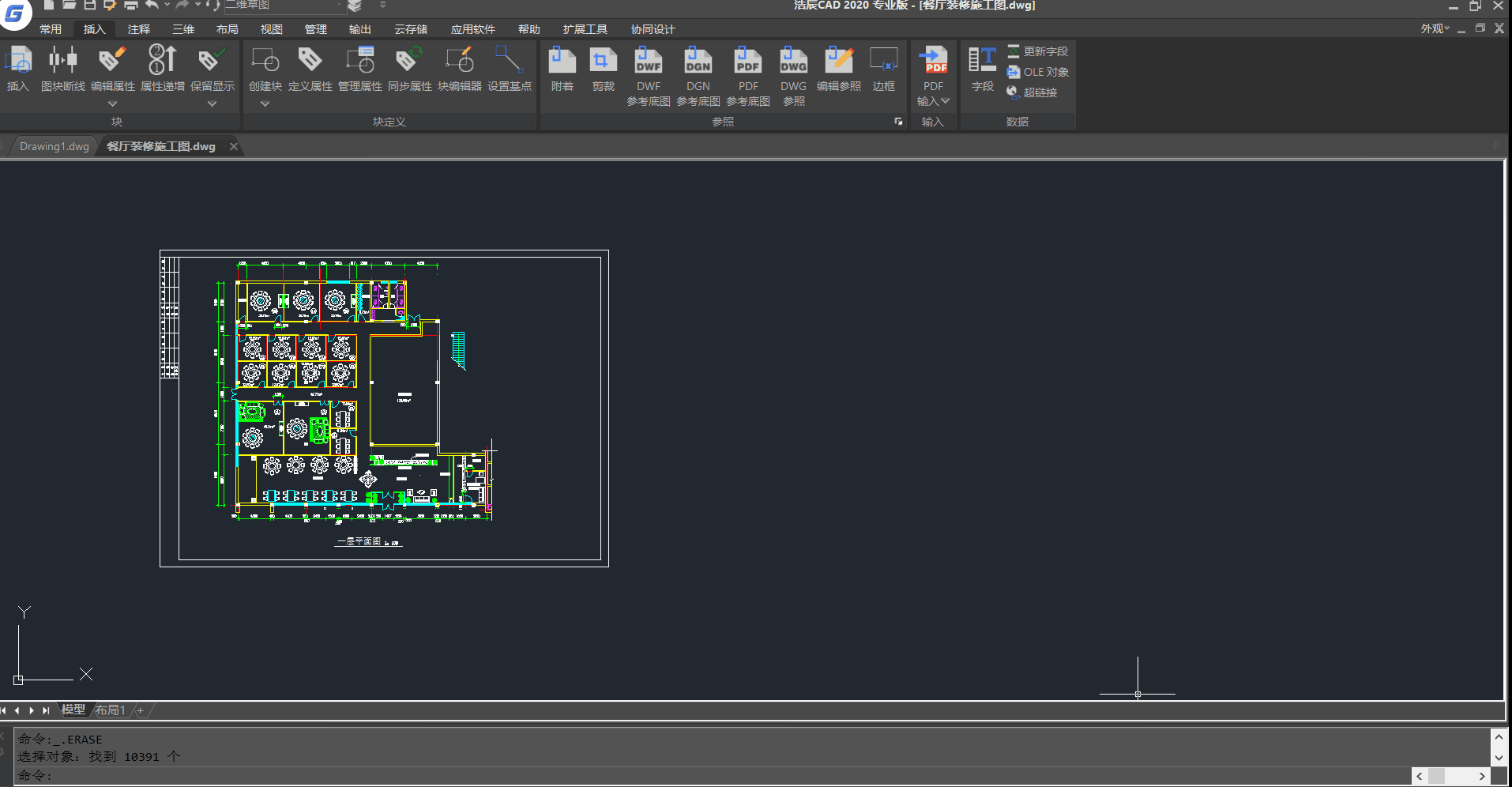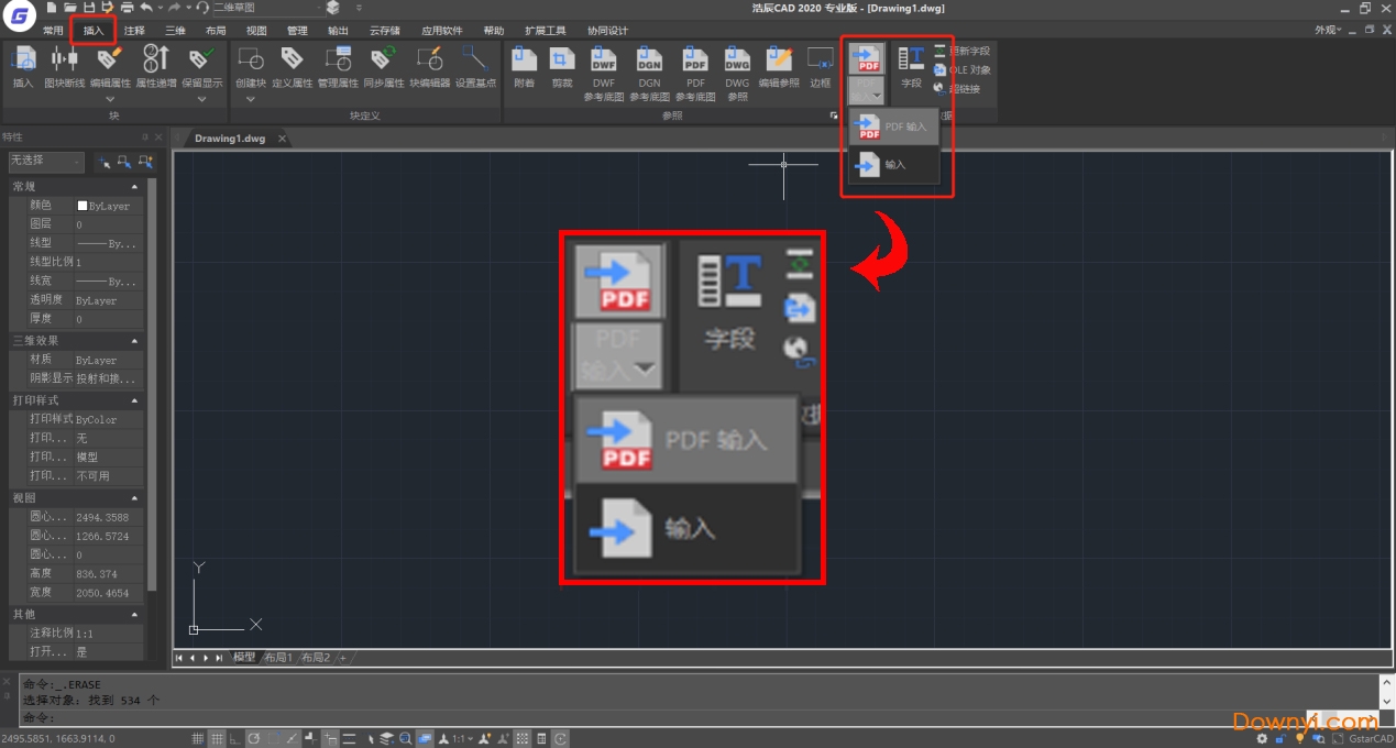 打开浩辰cad 2020在“插入”功能找到pdf输入或命令行输入pdfimport均可。