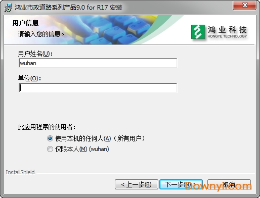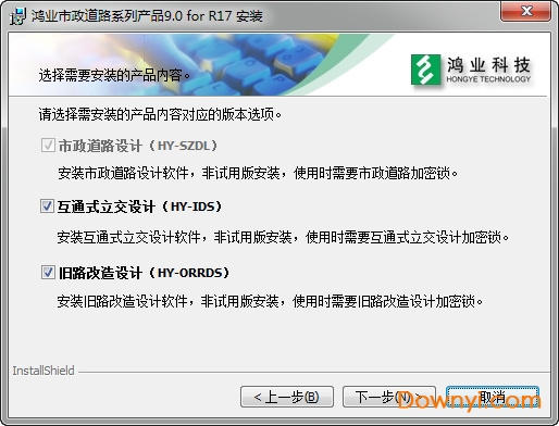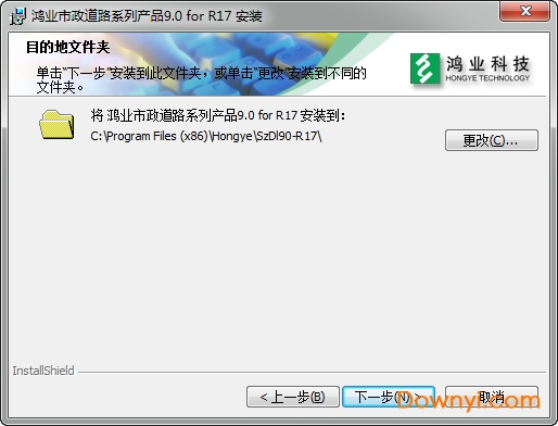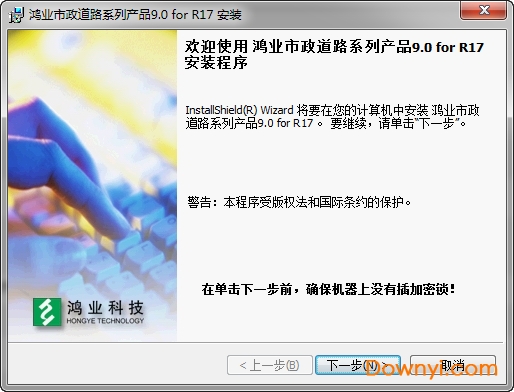 将鸿业市政道路9.0+R17 (修改)文件夹里面的所有子为文件夹全部复制到软件的安装目录;