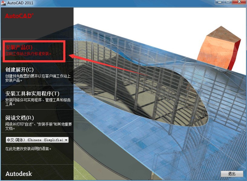 3.成功打开AutoCAD2011的安装界面:选择“安装产品”