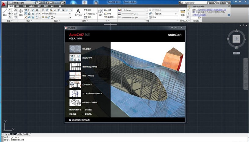 AutoCAD 2011是在原先的CAD软件基础上,在界面、工作空间、面板、选项板、图形管理、图层、标注等到方面进行了更改时宜,增加和增强了部分功能,同时提供用户可以使用实体造型、曲面造型、网面造型等功能,使CAD在功能方面更加完善和实用。