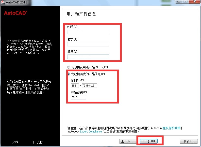 5.安装过程基本一直下一步就可以了(序列号:356-72378422 产品密钥:001C1)