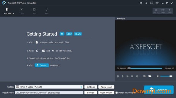 aiseesoft ts video converter可以帮你快速的进行视频格式转换,通过它你可以将ts格式的视频转换成avi,mp4等多种格式的,而且还可以进行各种编辑,比如说添加一些文字,还可以调节它的快慢等等。