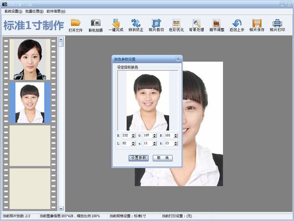 证照之星 tm证件照片处理软件只需点击‘一键完成’按钮,就可以全自动地完成所有操作。软件内嵌了复杂的人脸智能识别技术,让这一切变得无比简单!