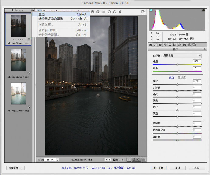 2. 在 Camera Raw 中打开图像文件。