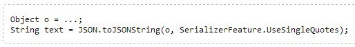 标准的JSON是使用双引号的,javascript支持使用单引号格式的json文本,fastjson也支持这个特性,打开SerializerFeature.UseSingleQuotes这个特性就可以了了,例如: