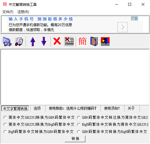 中文简繁互转工具。支持文本文件的gbk到big5、big5到gbk、gbk繁体到简体、gbk简体到繁体、big5到gbk简体的批量转换。